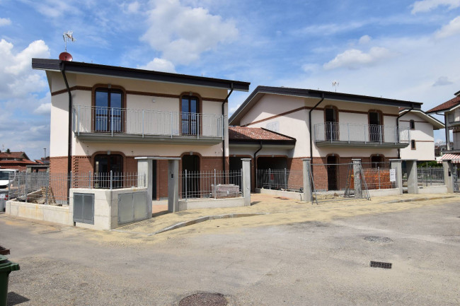La villa ha un giardino sul lato interno e sulla parte frontale è pavimentato in autobloccanti con la possibilità di avere un posto auto esterno. Il marciapiede frontestante è piastrellato con materiali tipo pietra di Luserna.